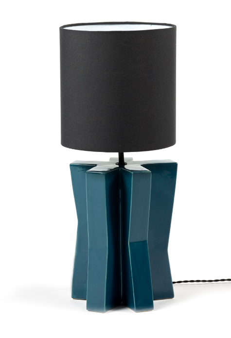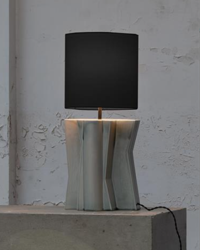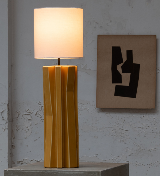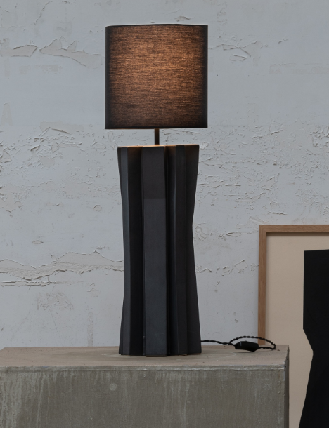 Les lampes Yucca de Bob Verhelst reflètent sa passion pour la sculpture, visible dans leur base angulaire, initialement créée en grandeur nature à partir de carton. La glaçure colorée et la texture de la lampe de chevet se démarquent face aux matériaux doux et naturels de l’abat-jour. Ses dimensions: L 25 W 25 H 82 CM